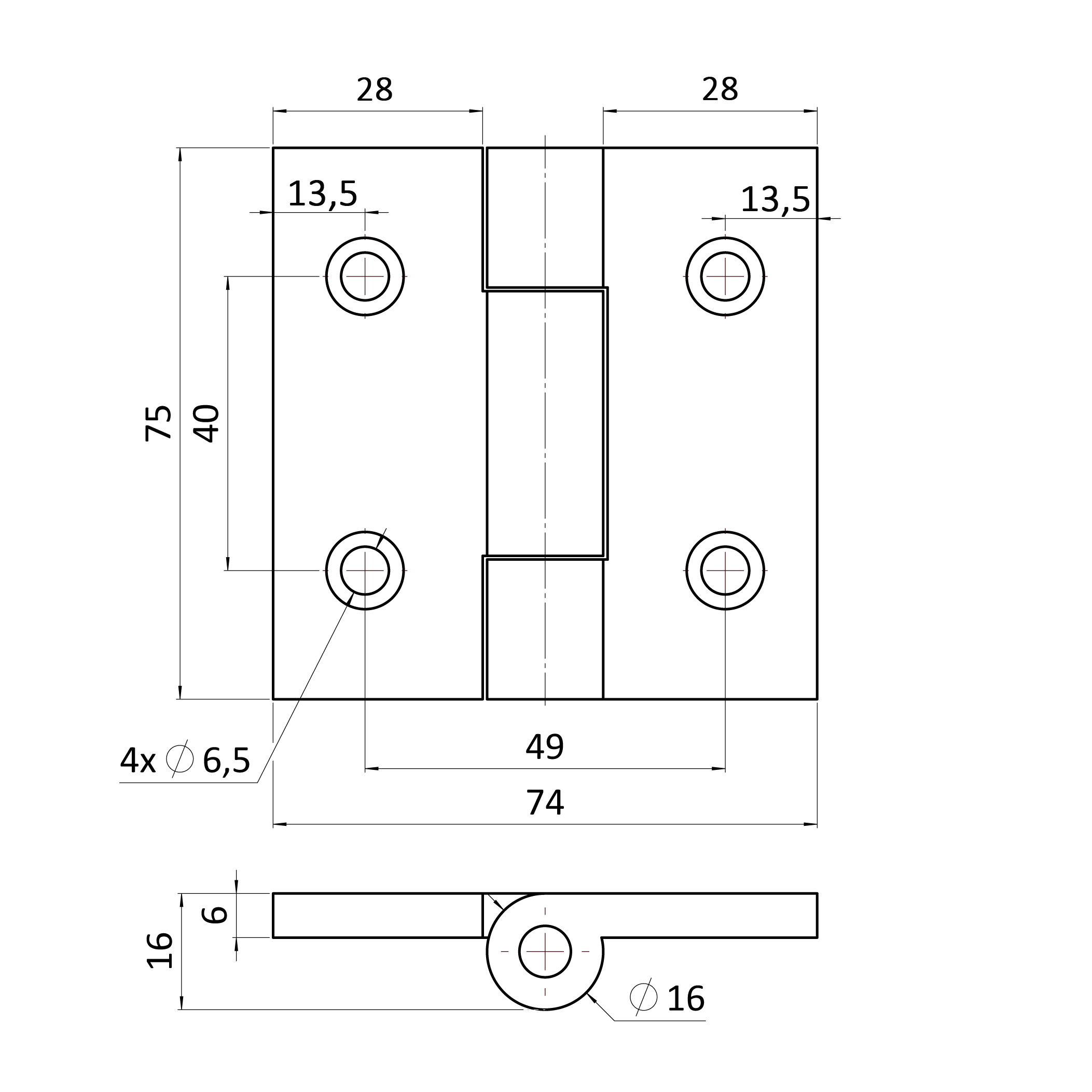 Pant na brány, na jekl, L-75 mm, broušená nerez AISI304