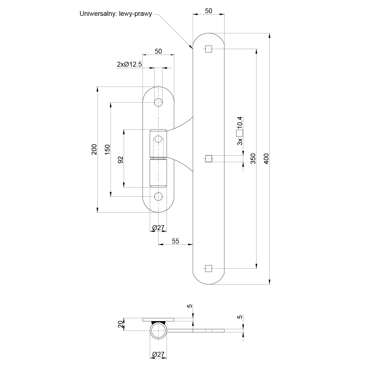 Pant s kováním 400 x 50 x 5 mm, ø27 m...
