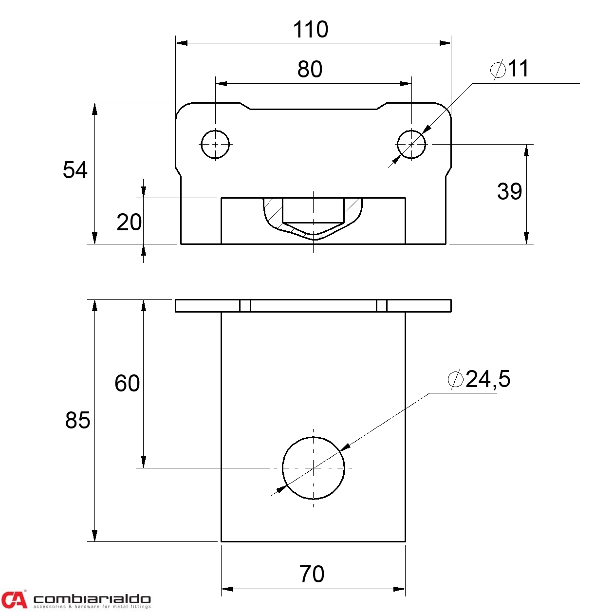 Navárací spodný záves od popredného talianského výrobcu Combi Arialdo. Bez povrchovéj úpravy. Kombinacia s C857, C856, C850, C855, C848, C845, C880, C378, C377, C379, C376, C375. Počet kusů v balení - 6.