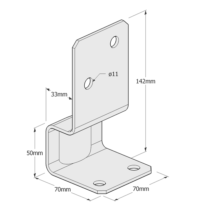 Patka sloupku 34x70x70x142x50mm, 3mm pozink
