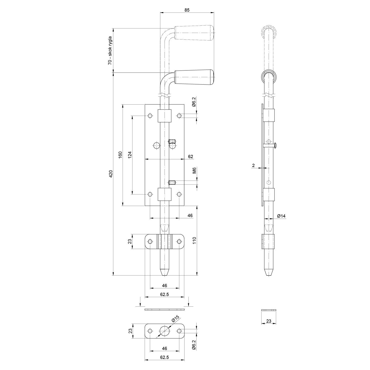 Petlice ø14mm, L: 420mm, černý