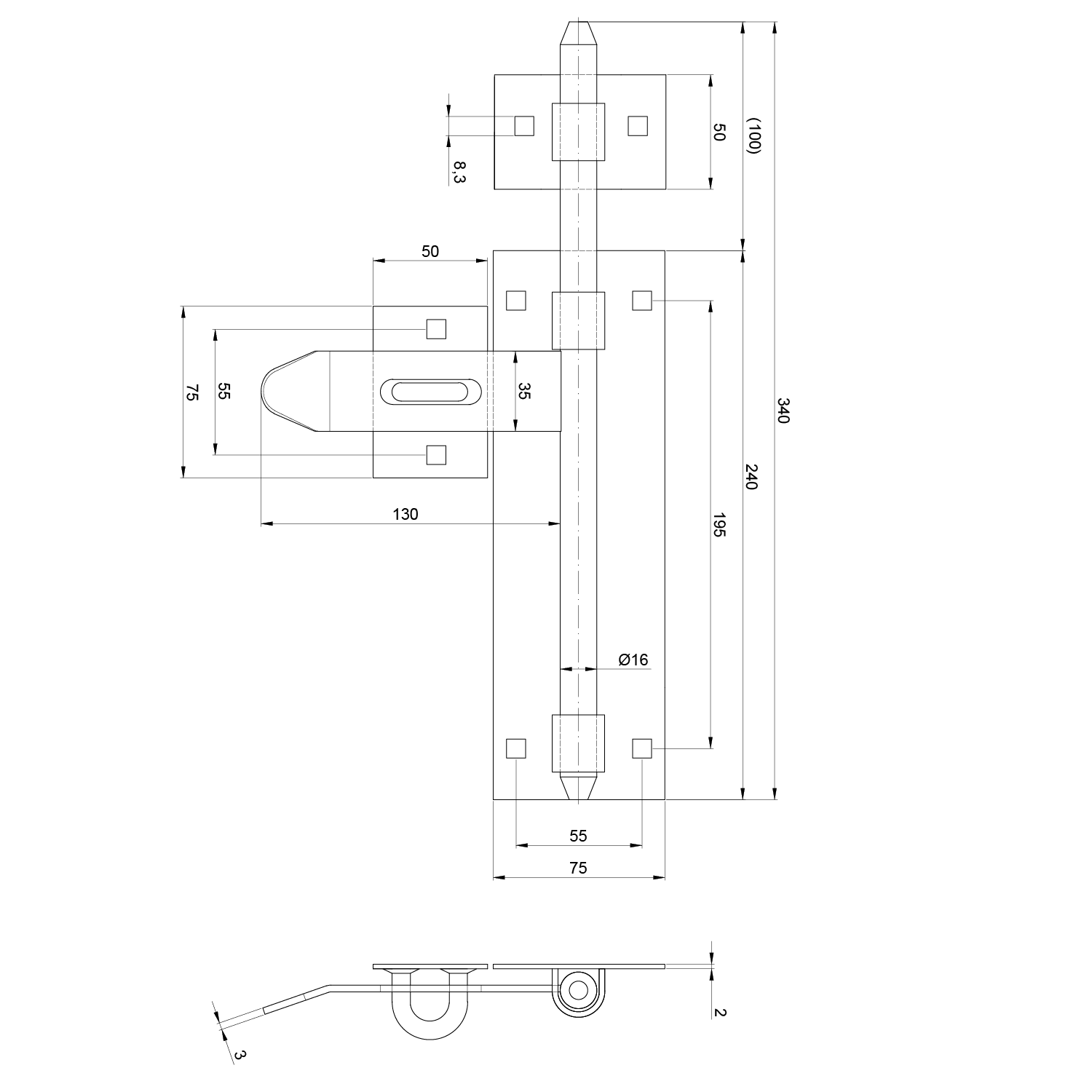 Petlice zinkovaná ø 16 mm, L: 340 mm