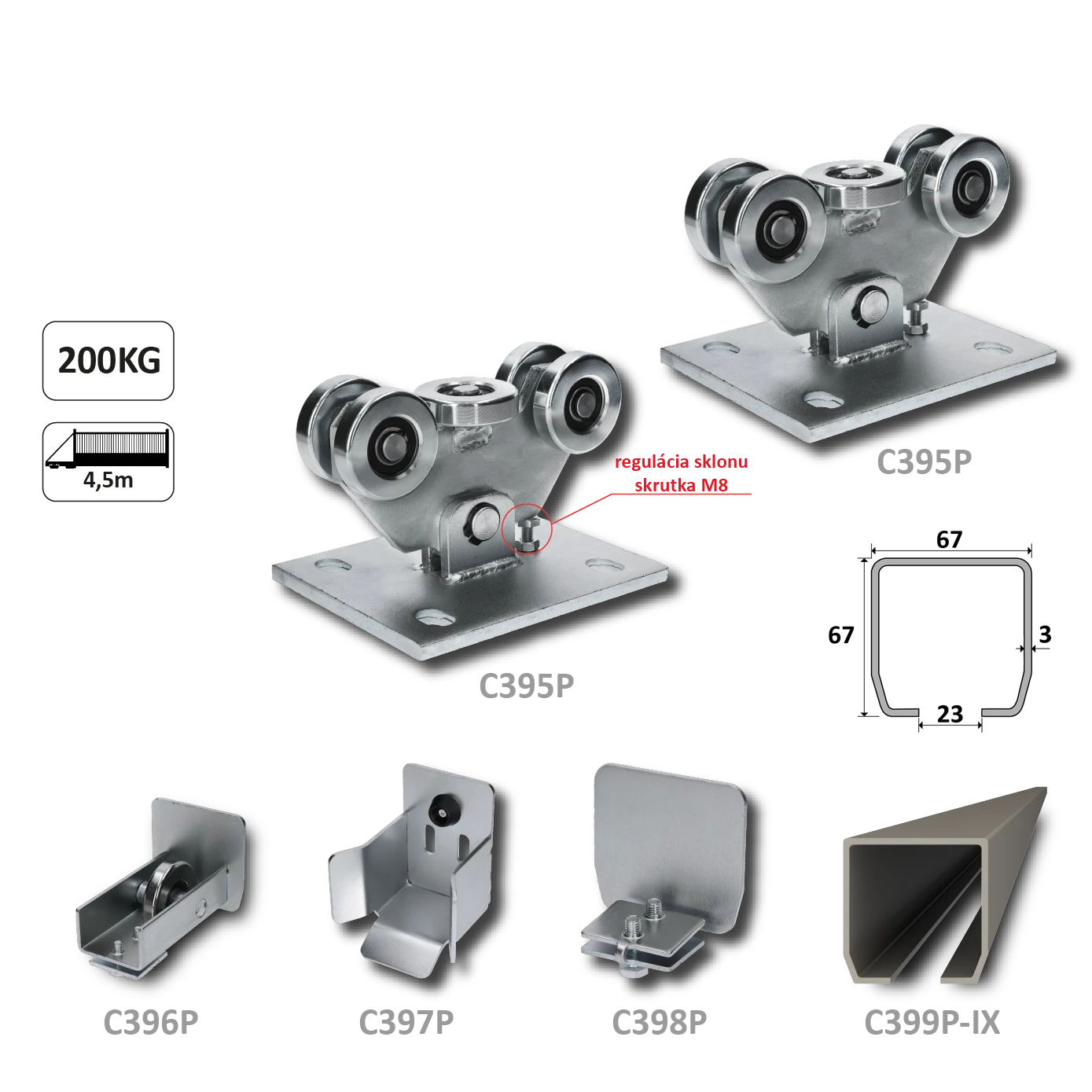 PICCOLO samonos do 200 kg/4,5 m, profil 67 x 67 x 3 mm