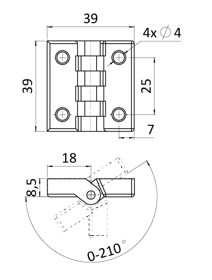 Plastový závěs, rozměr: 40x40mm, tloušťka: 5mm, balení obsahuje šrouby
