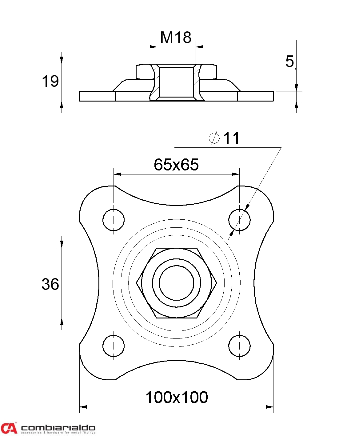 Kotvící plotna ve tvaru hvězdy od předního italského výrobce Combi Arialdo. Povrchová úprava - pozink, určená pro závitové úchyty M18 pro pevný úchyt do stěny nebo na sloup.