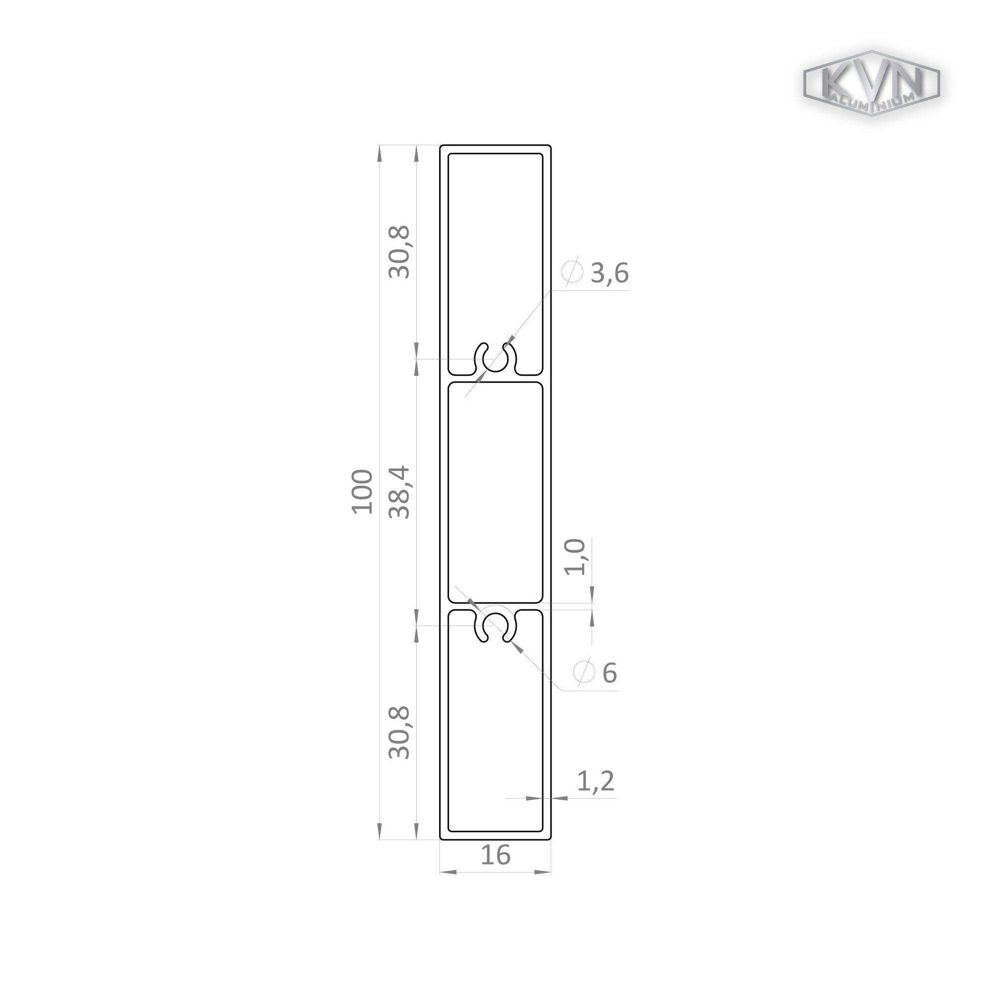 Poškozený profil 100x16mm, L-6000mm, hliník bez povrchové úpravy