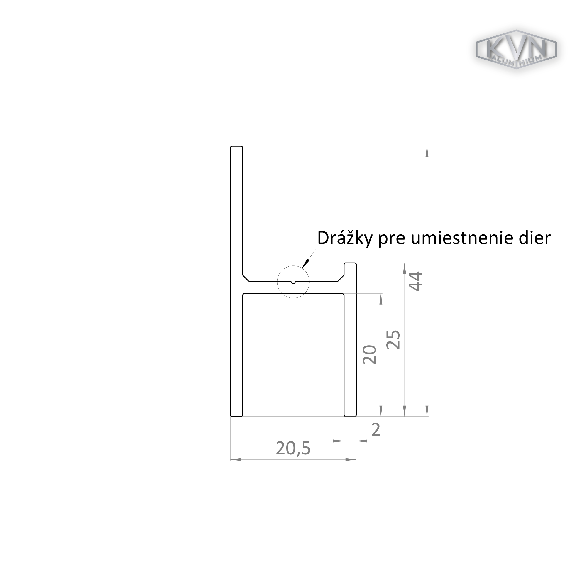 Poškozený UT profil 20,5x44 mm, materiál EN AW-6060 T66, přírodní hliník bez povrchové úpravy