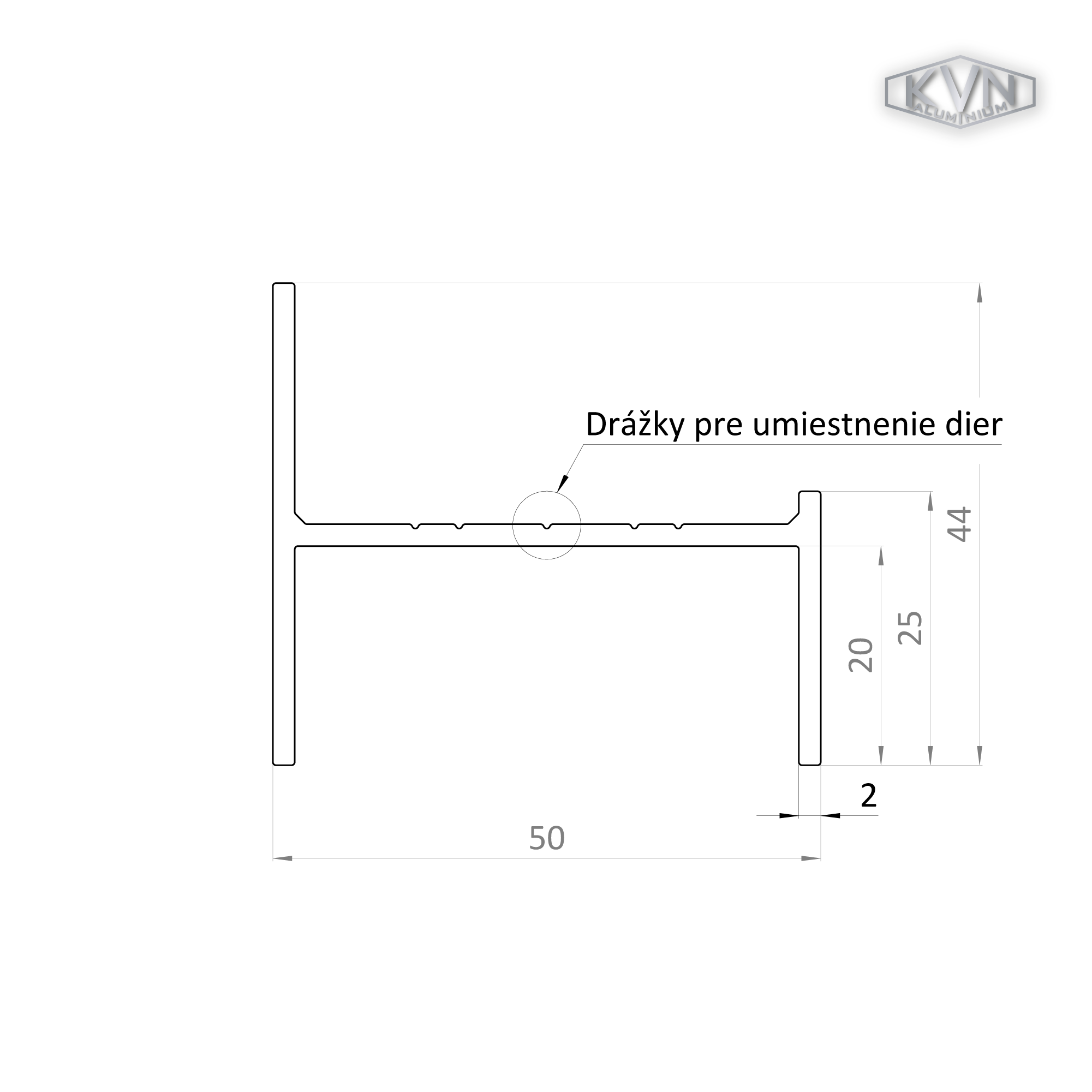 Poškozený UT profil 50x44x6000mm, materiál EN AW-6060 T66, přírodní hliník bez povrchové úpravy, cena za KUS