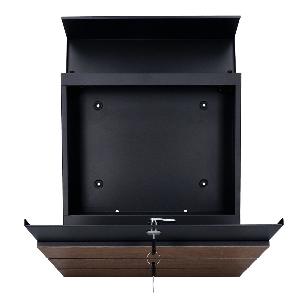 Schránka poštovní se zpomaleným zavíráním (370x410x130mm, tloušťka plechu: 0.8mm), Max. formát listu: A4, Dřevodekor + RAL 7016