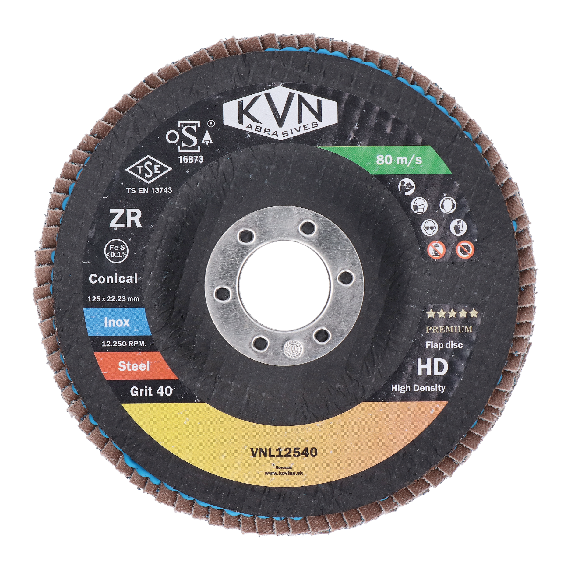 Prémiový lamelový kotúč na oceľ a nerez, 125mm, zrno 40, extra hrubý PREMIUM, 100% zirconia, kónický