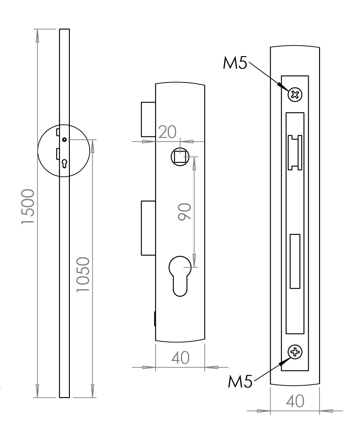 Profil 40x40x2mm H-1500mm se zámkem ZM90/40H, pravý