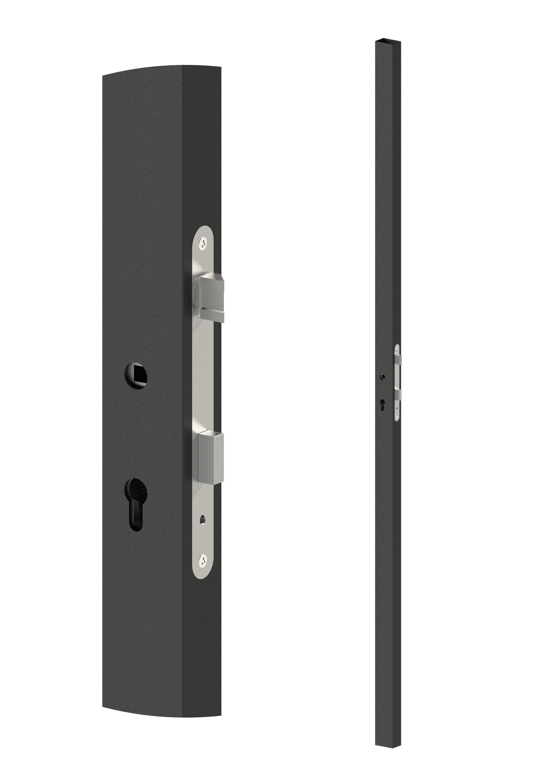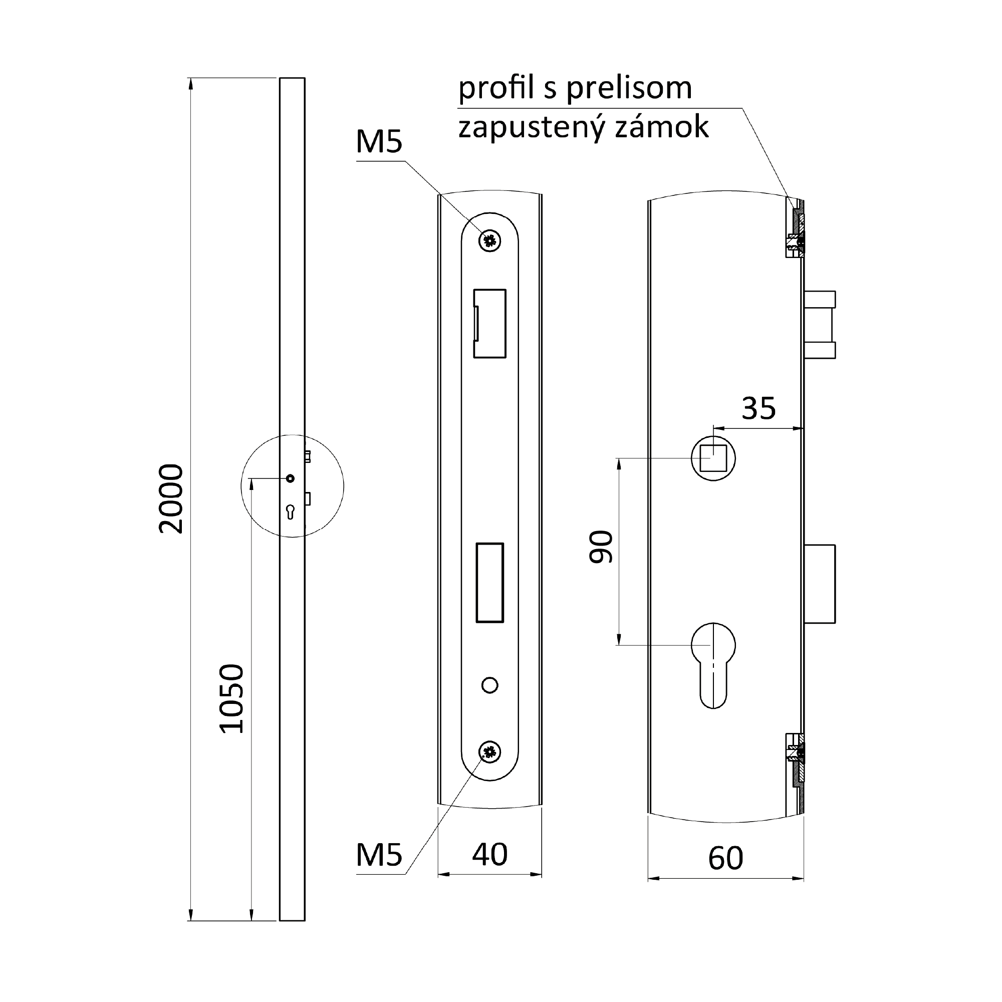 Profil 60 x 40 x 1,5 x 2000 mm se zapuštěným zámkem vhodným pro rám branky. Profil je dodáván bez povrchové úpravy. Zámek je oboustranný, vhodný pro pravé i levé otevírání. Rozteč zámku je 90 mm.