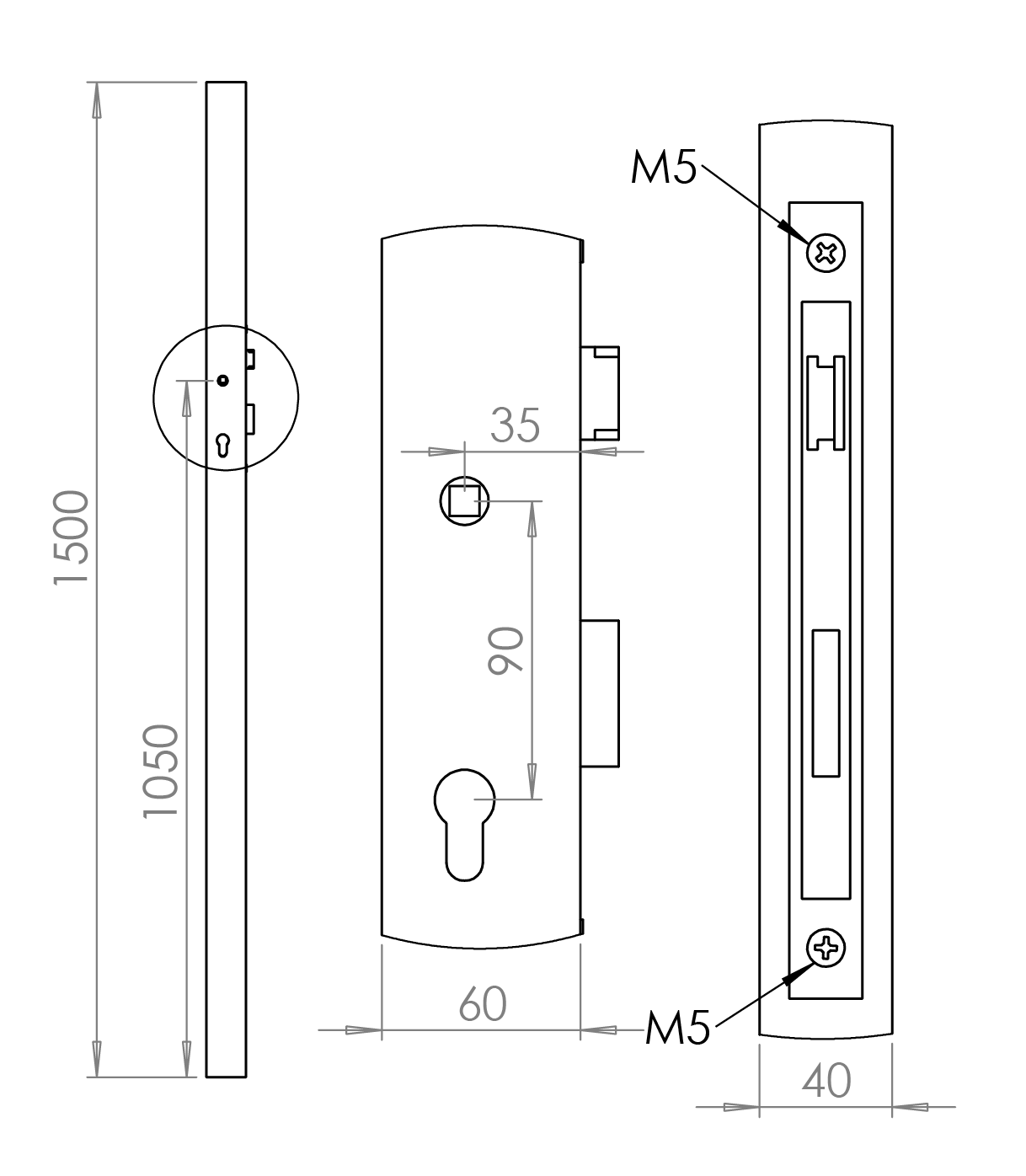 Profil 60x40x2mm H-1500mm se zámkem ZM90/50H, levý