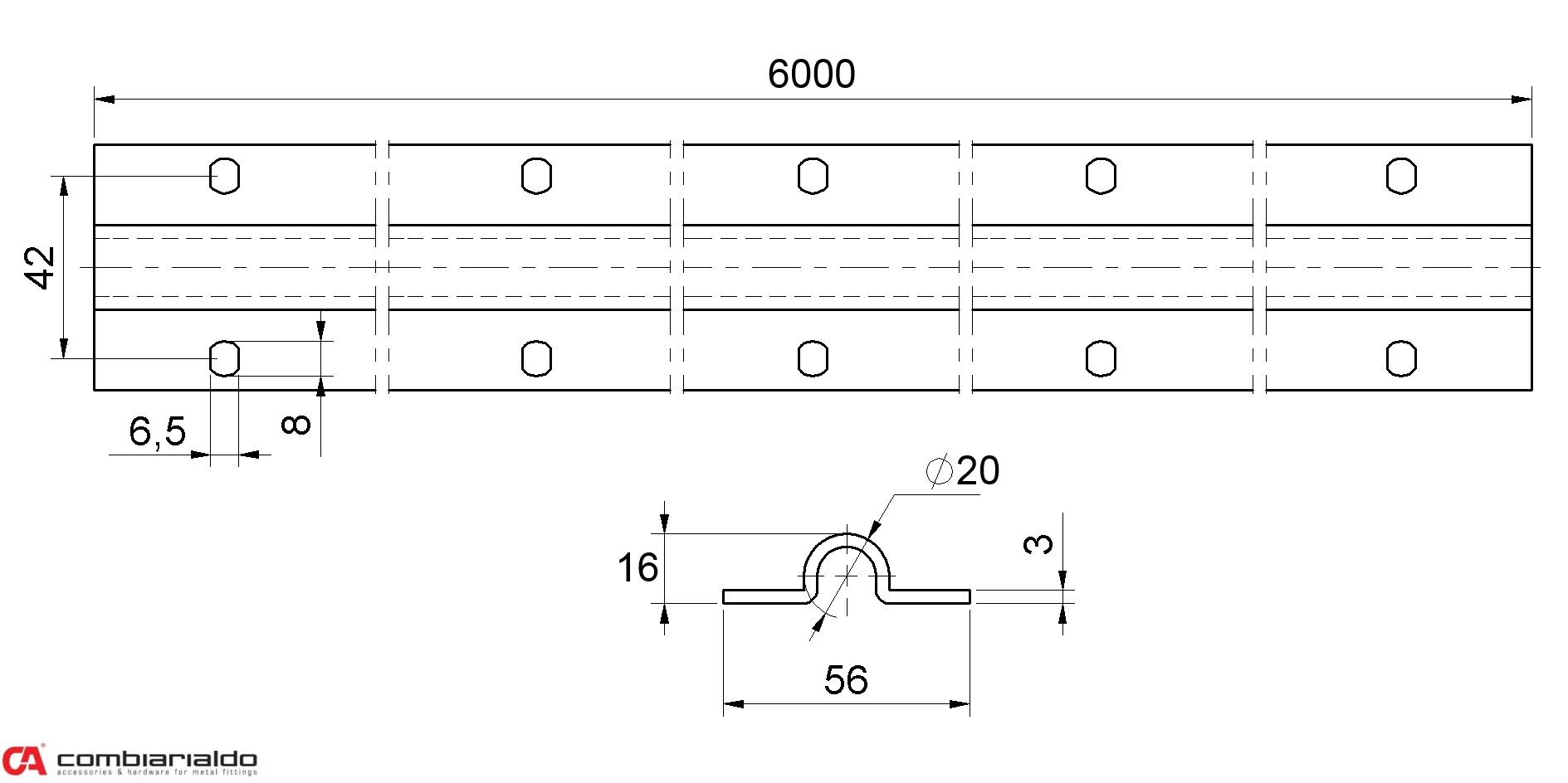 Profil U ø20mm, L-5000mm, pro posuvné...