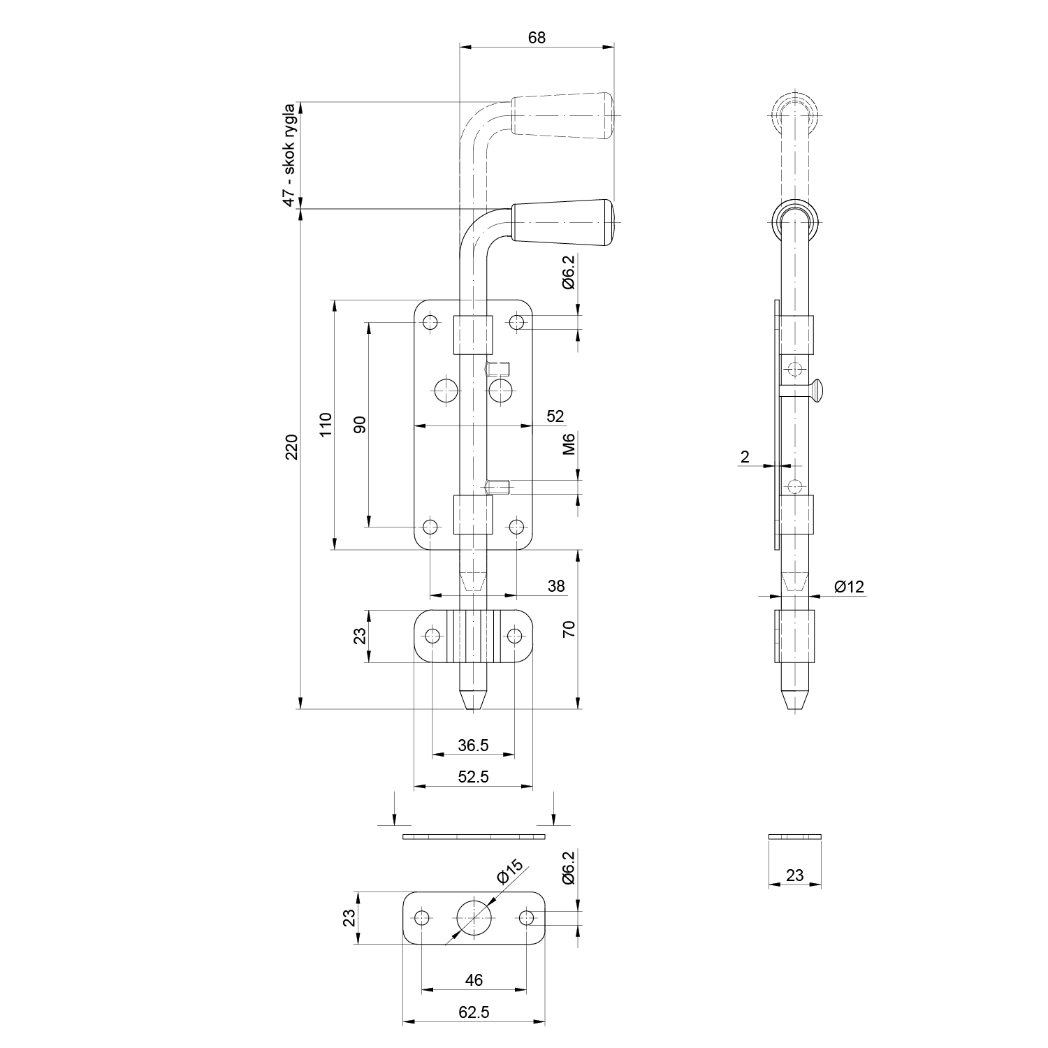 Rýgl ø12 mm, L:220 mm, pozinkovaný s protikusem