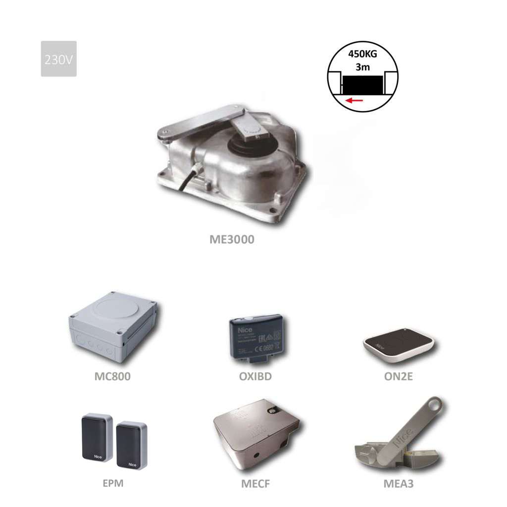 Sada podzemního pohonu pro jednokřídlou bránu do 3m / krídlo, 1x ME3000, 1x MC800, 1x ON2E, 1x OXIBD, 1 pár EPM, 1x MECF, 1x MEA3