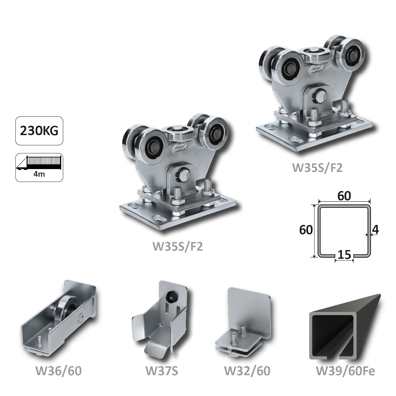 Samonos do 230 kg, profil 60 x 60 x 6...