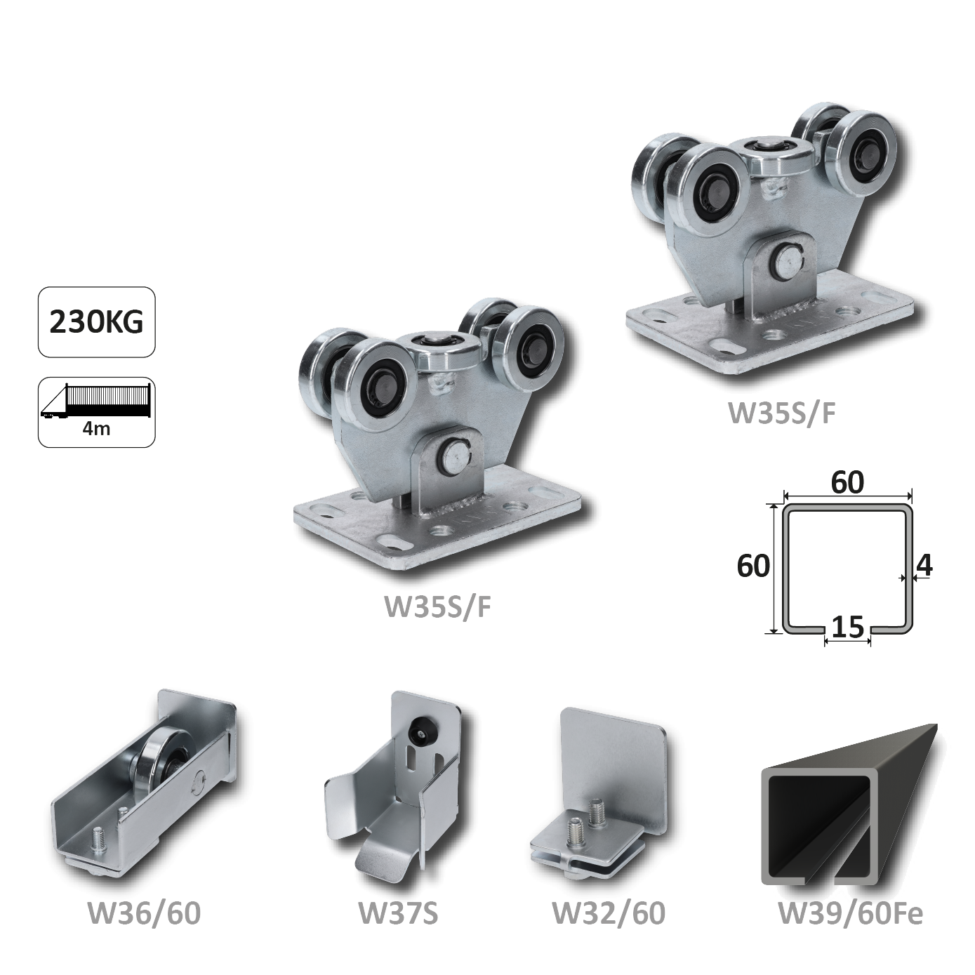 Samonos do 230 kg, profil 60 x 60 x 6...