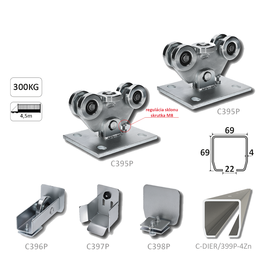 Samonos do 300 kg, děrovaný profil 69...