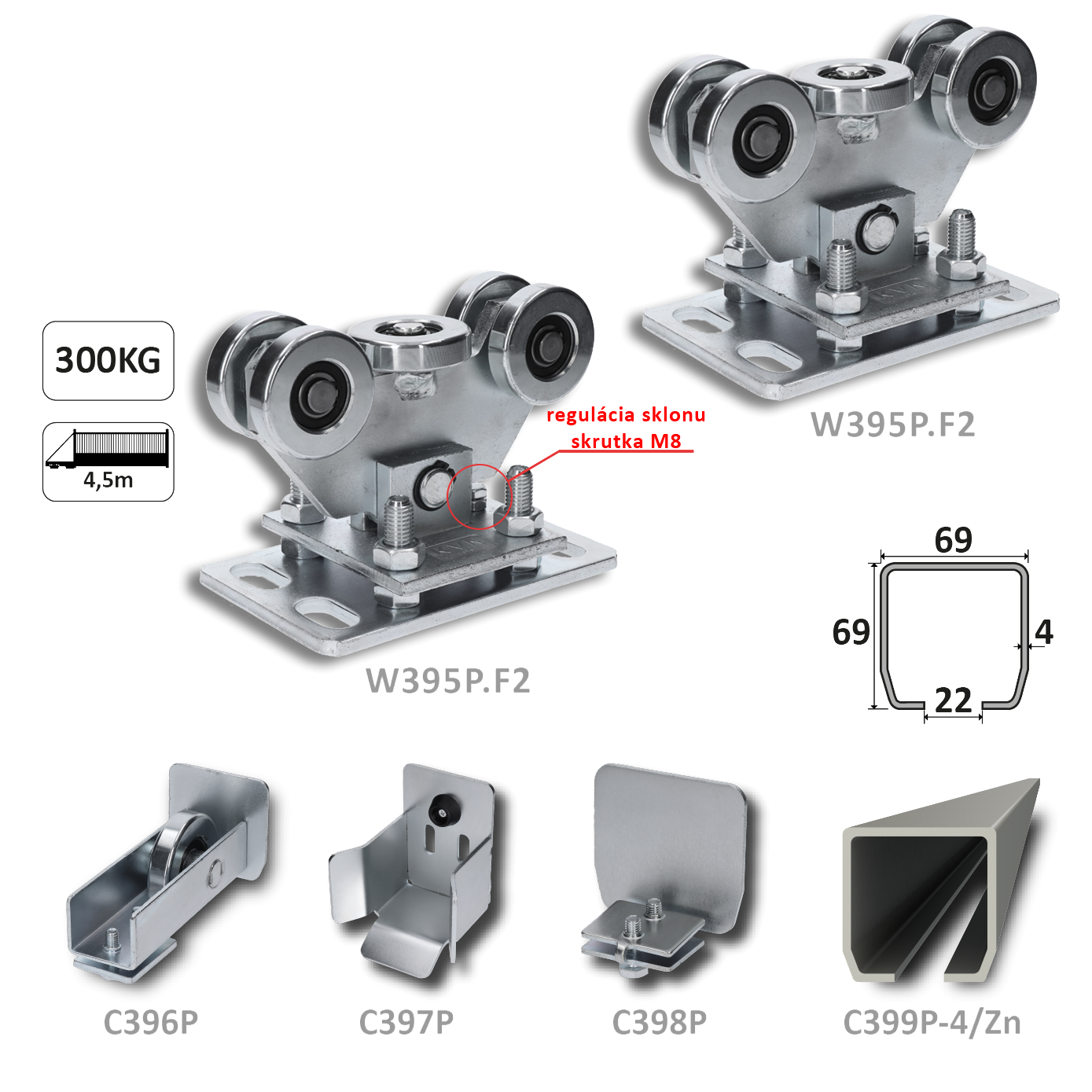 Samonos do 300 kg, profil 69 x 69 x 6...