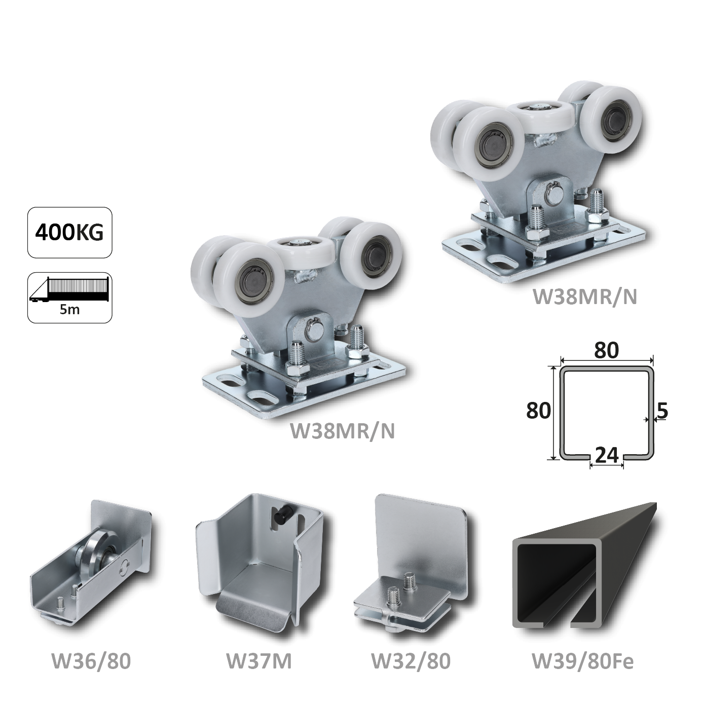 Samonos do 400 kg, profil 80 x 80 x 6000 mm, Fe