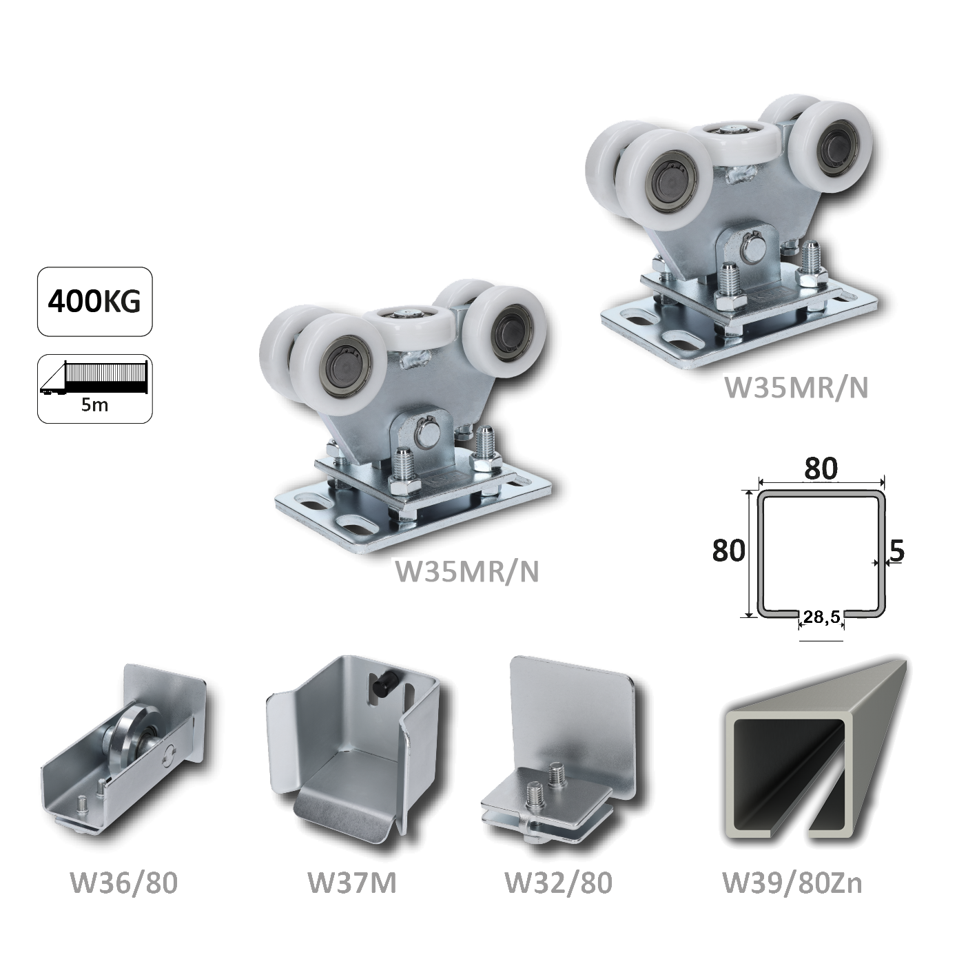 Samonos do 400 kg, profil 80 x 80 x 6000 mm, Zn
