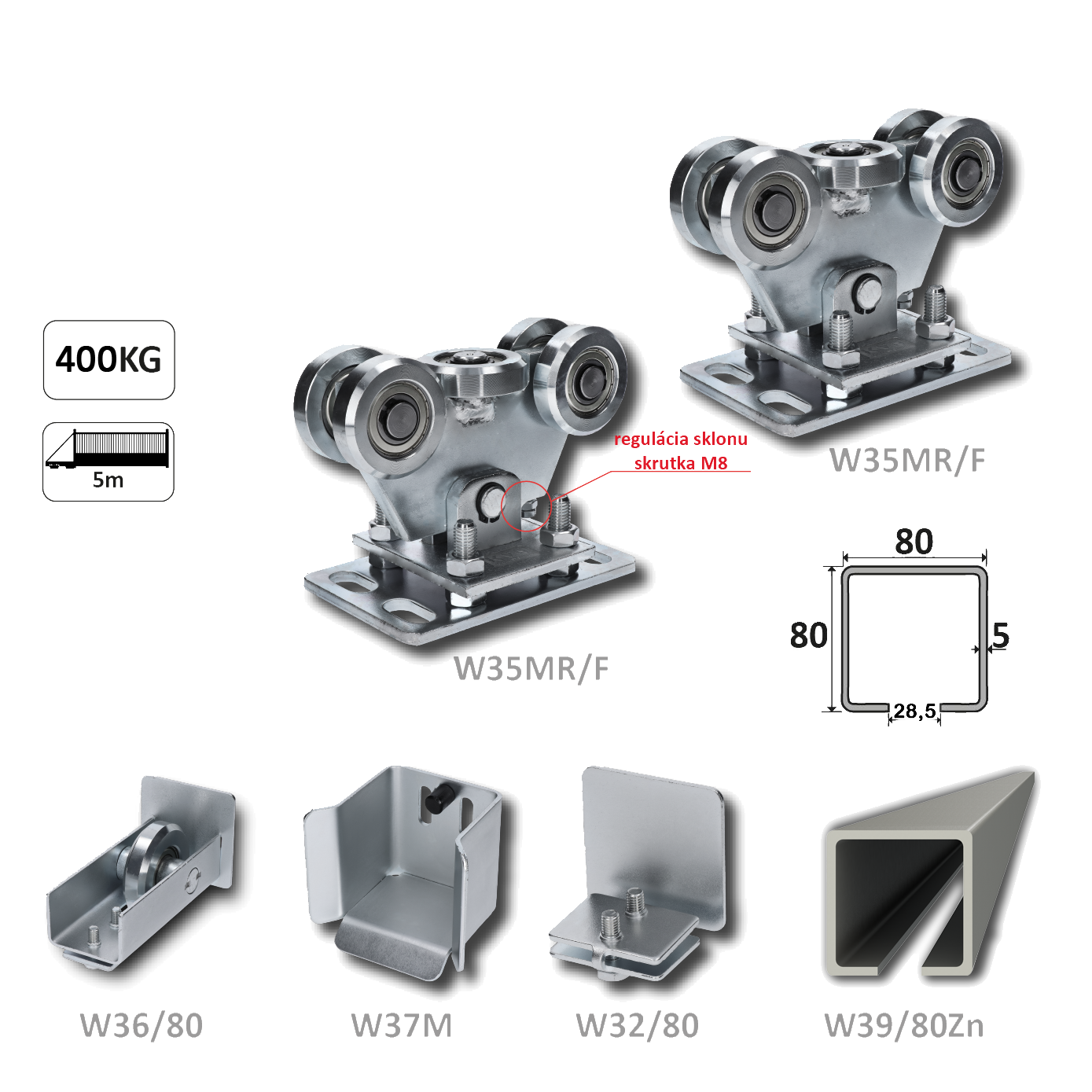 Samonos do 400 kg, profil 80 x 80 x 6000 mm, Zn