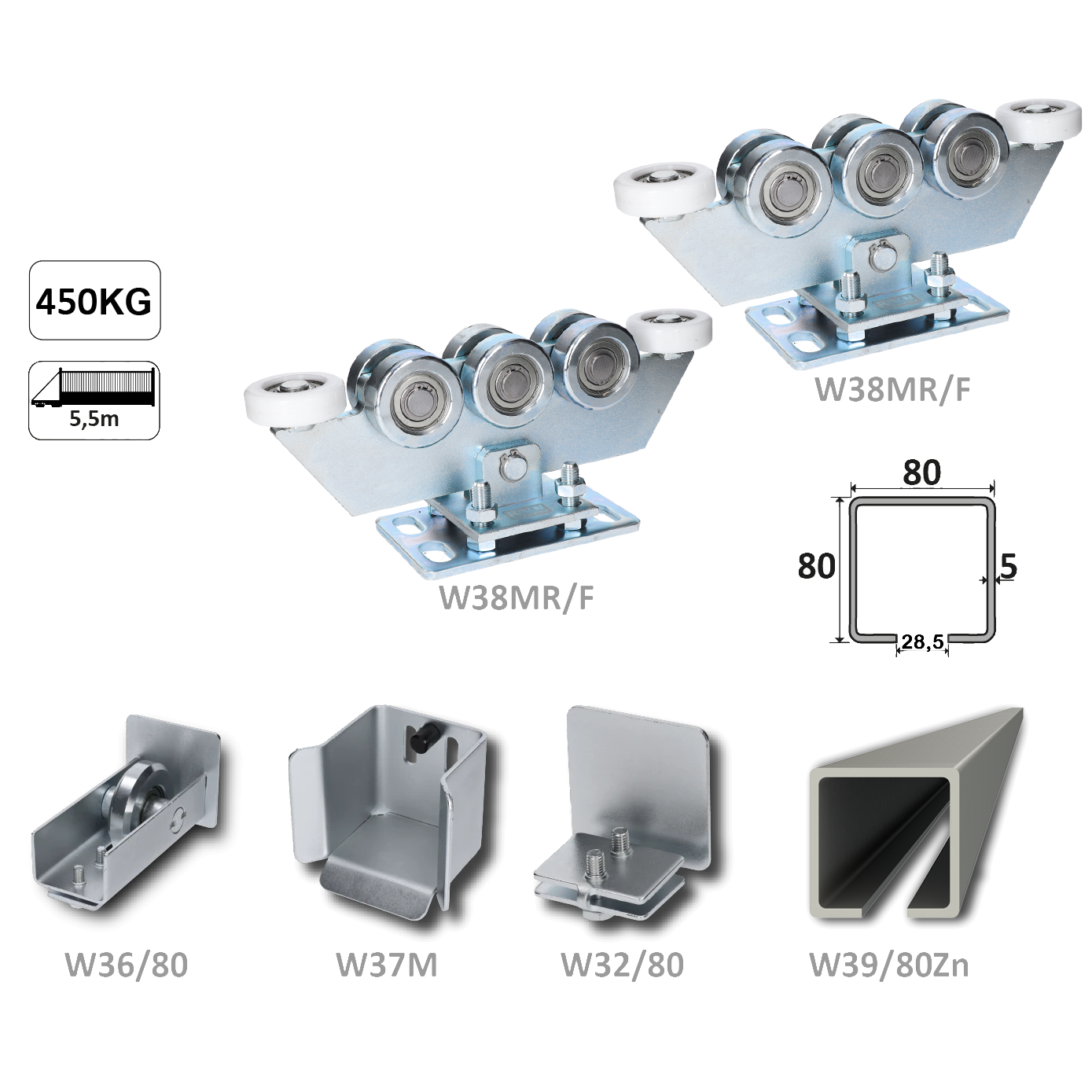 Samonos do 450 kg, profil 80 x 80 x 6000 mm, Zn