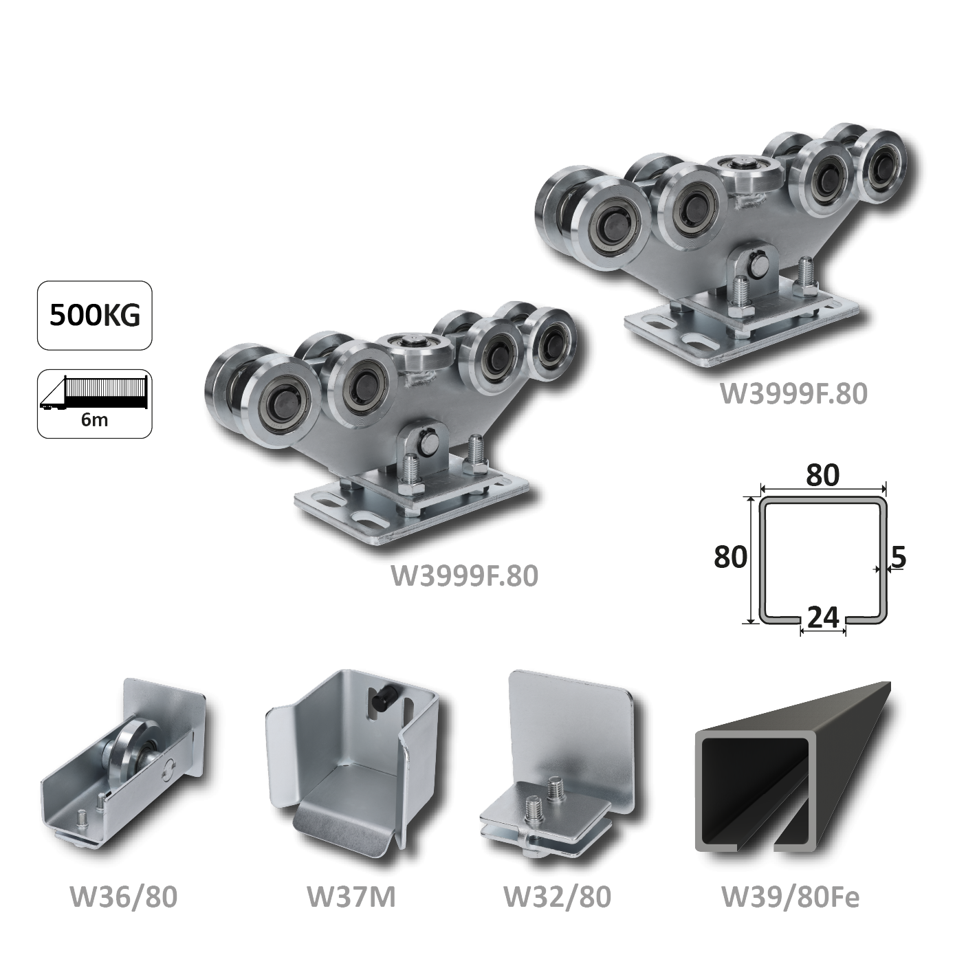 Samonos do 500 kg, profil 80 x 80 x 6000 mm, Fe