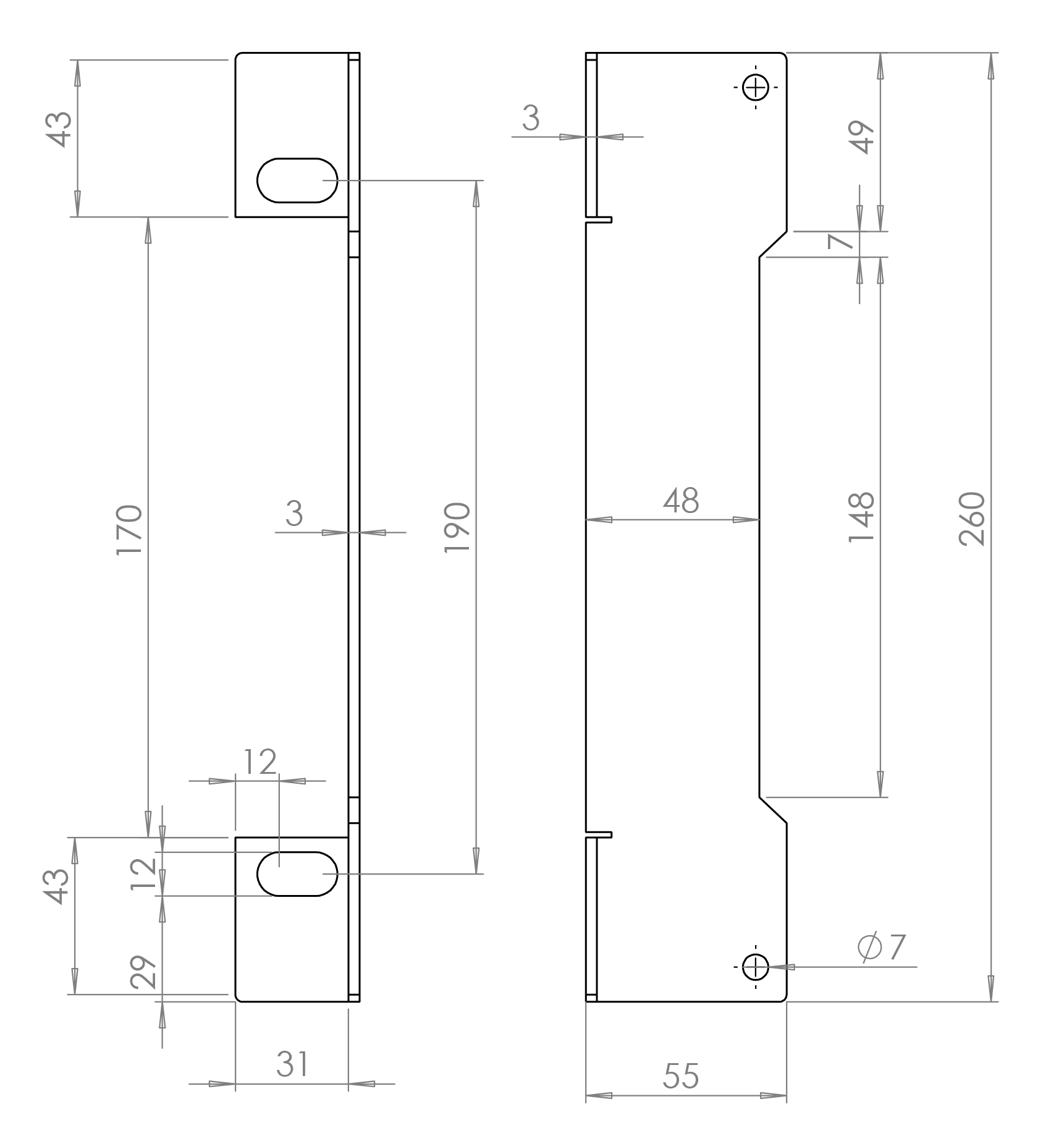 Dorazová kazeta je vyrobena z pozinkované oceli, což zajišťuje zvýšenou odolnost proti korozi a povětrnostním vlivům. Je vhodná pro venkovní použití.