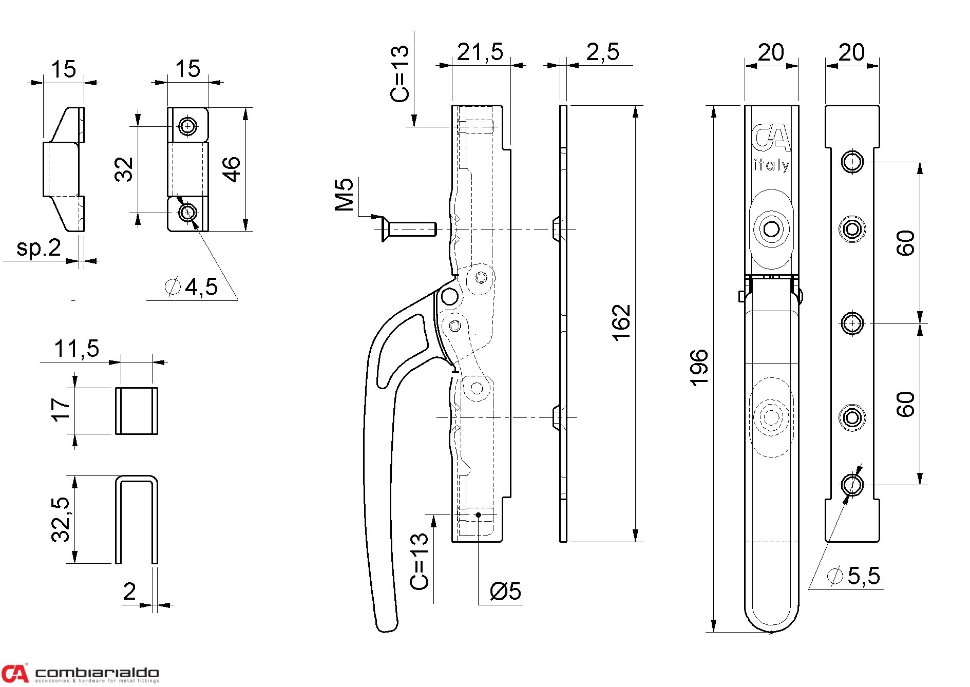 Uzavírací pákový systém L-162 mm, ovládací tyč 10x x10 mm. Počet kusů v balení - 6.