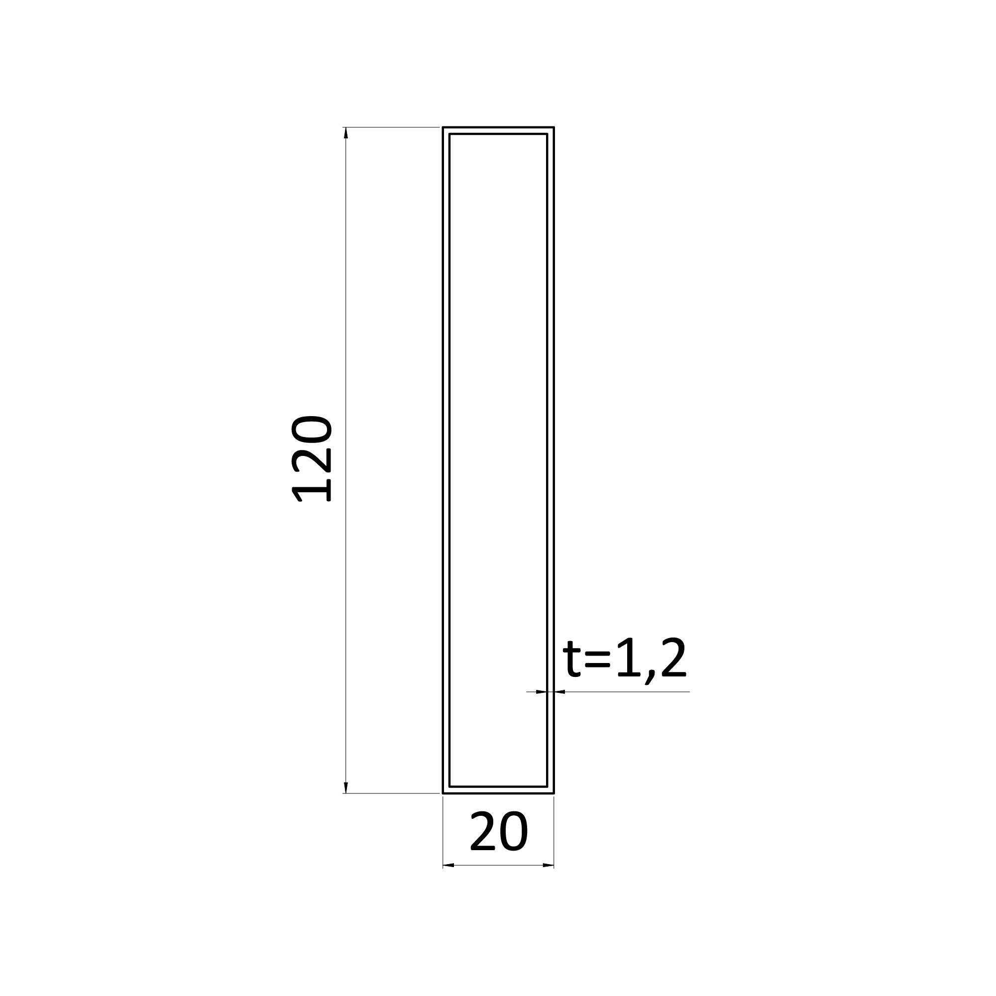 Uzavretý profil 120x20x1,25mm, zinkovaný DX51D+Z100, hladký L=3000mm, cena za kus