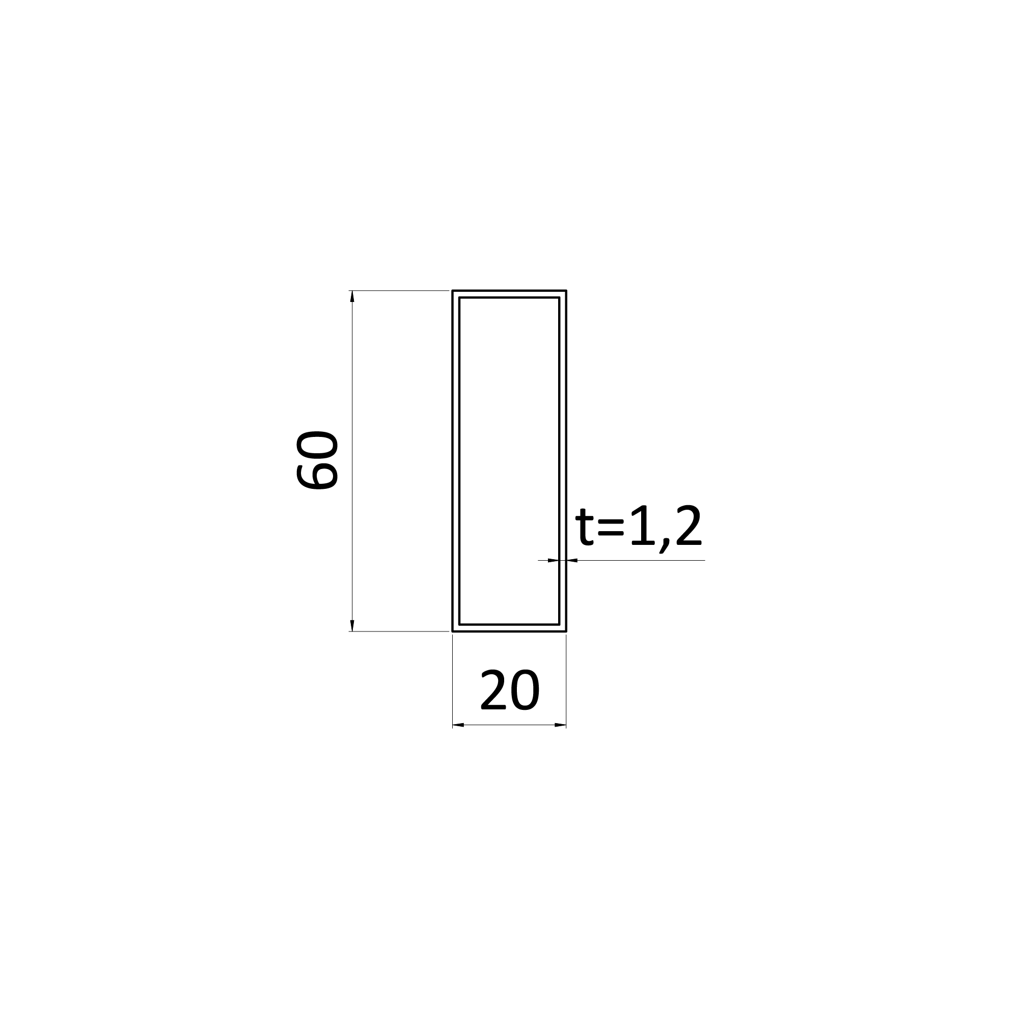 Uzavretý profil 60x20x1,2mm, zinkovaný DX51D+Z100, hladký L=6000mm, cena za kus