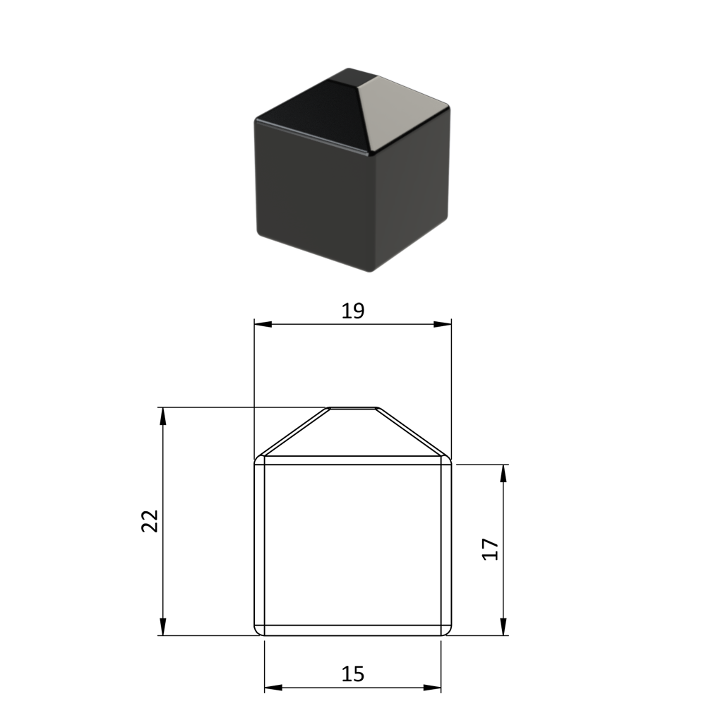 Vnější krytka 15 x 15 mm, plastová PE, černá