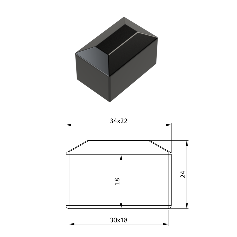 Vnější krytka 18 x 30 mm, plastová PE, černá