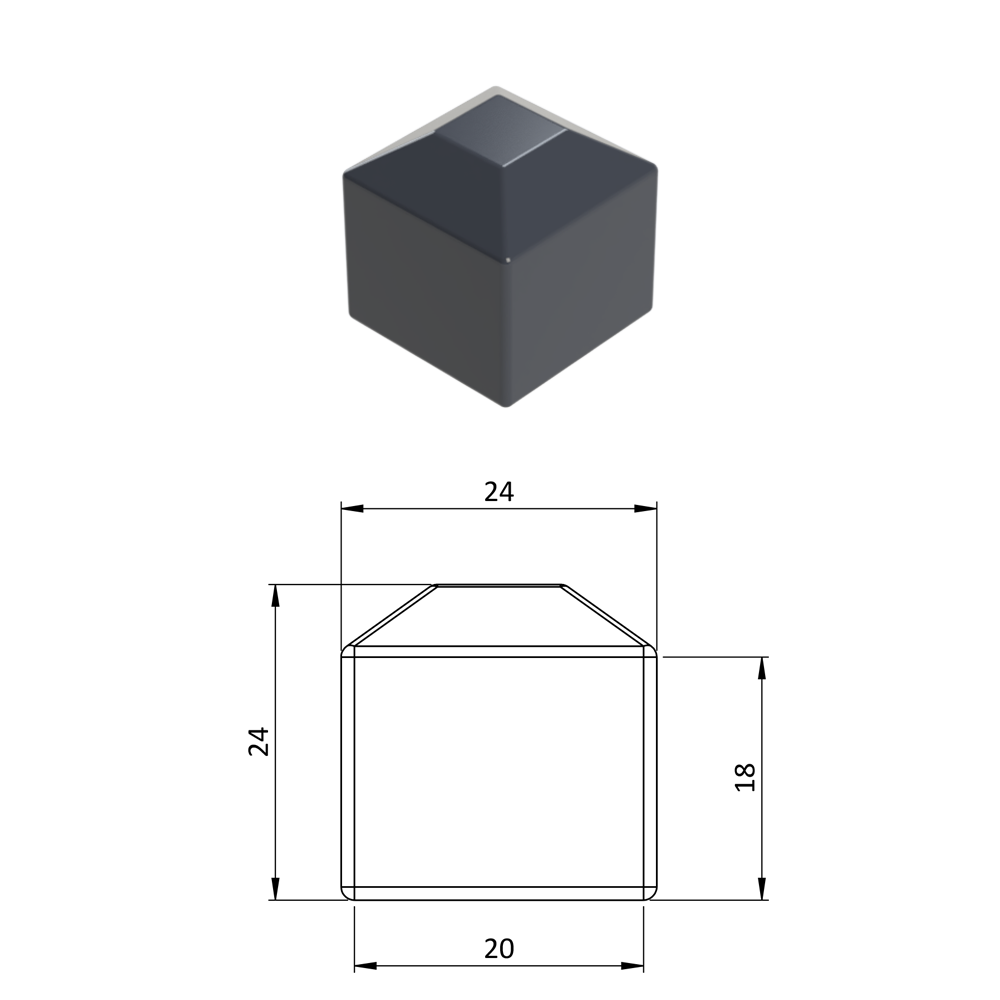 Vnější krytka 20 x 20 mm, plastová PE, antracit