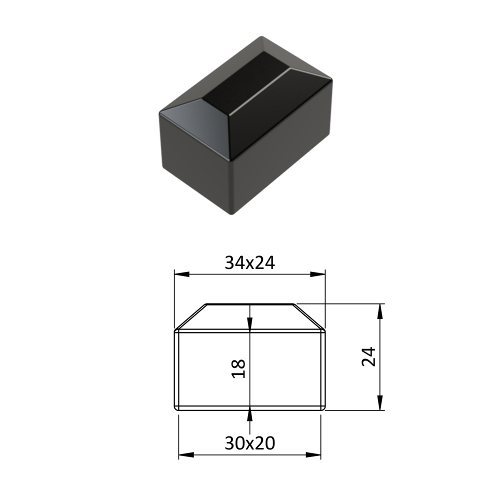 Vnější krytka 20 x 30 mm, plastová PE, černá