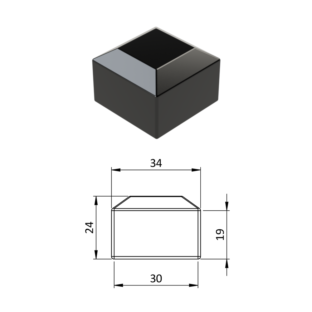 Vnější krytka 30 x 30 mm, plastová PE, černá