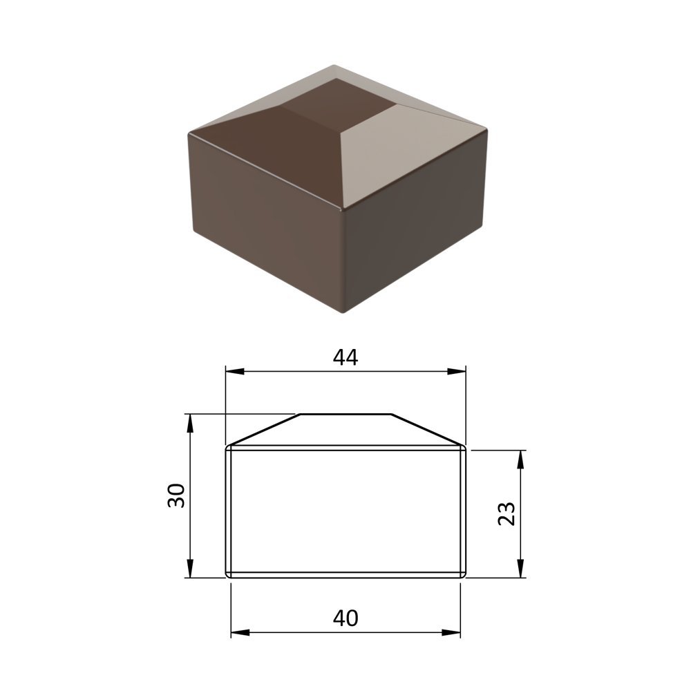 Vnější krytka 40 x 40 mm, plastová PE, hnědá