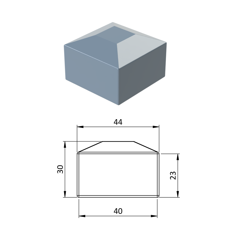 Vnější krytka 40 x 40 mm, plastová PE, šedá