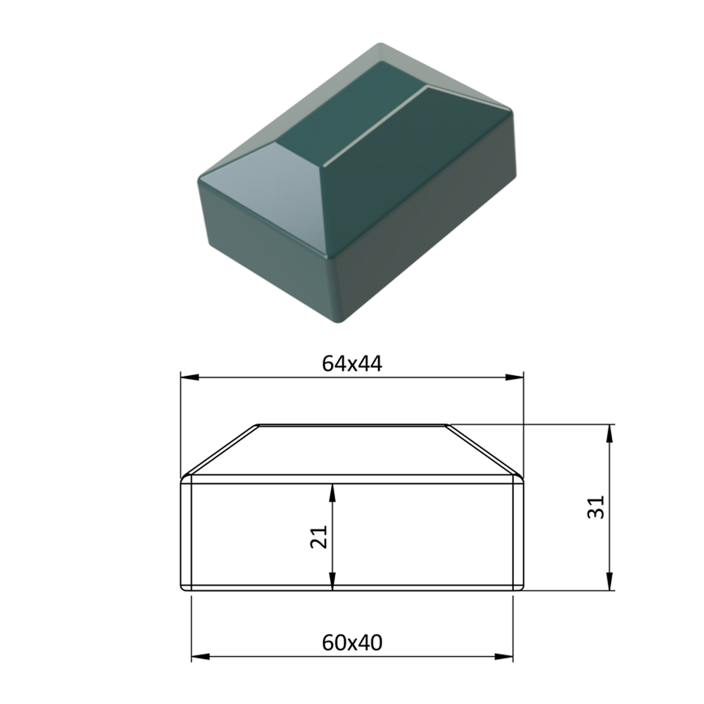 Vnější krytka 40 x 60 mm, plastová PE, zelená