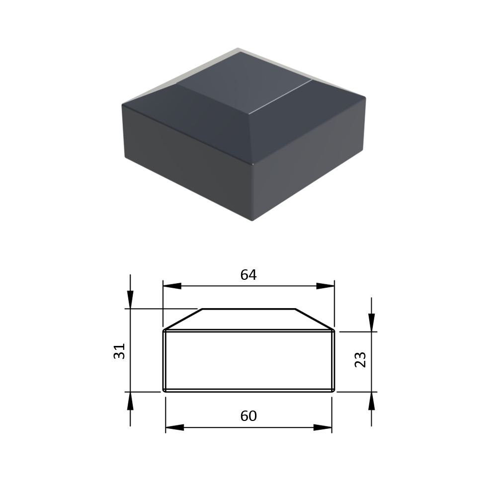 Vnější krytka 60 x 60 mm, plastová PE, antracit