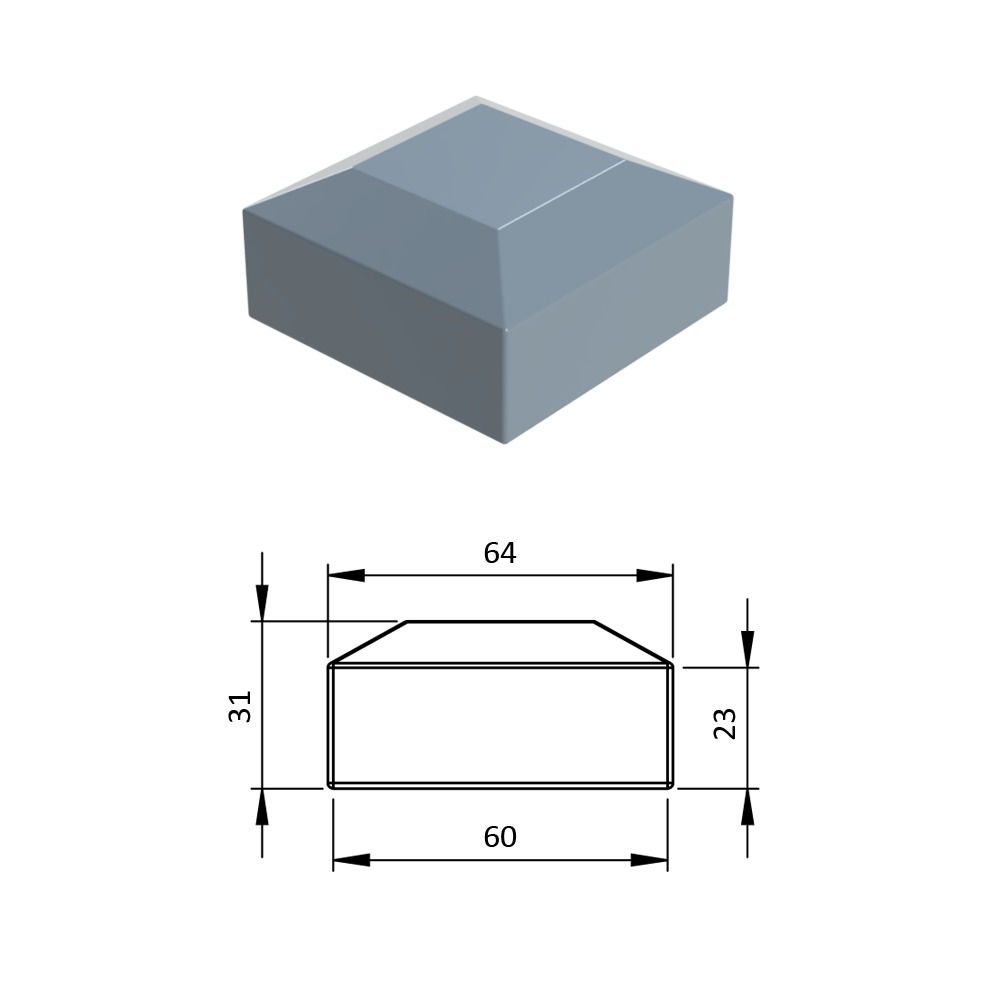 Vnější krytka 60 x 60 mm, plastová PE, šedá