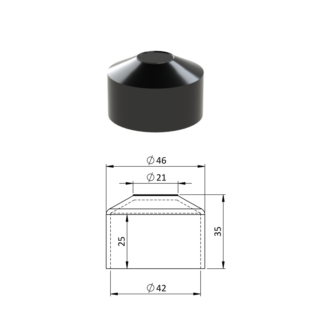 Vnější krytka kulatá ø 42,4 mm, plastová PE, černá