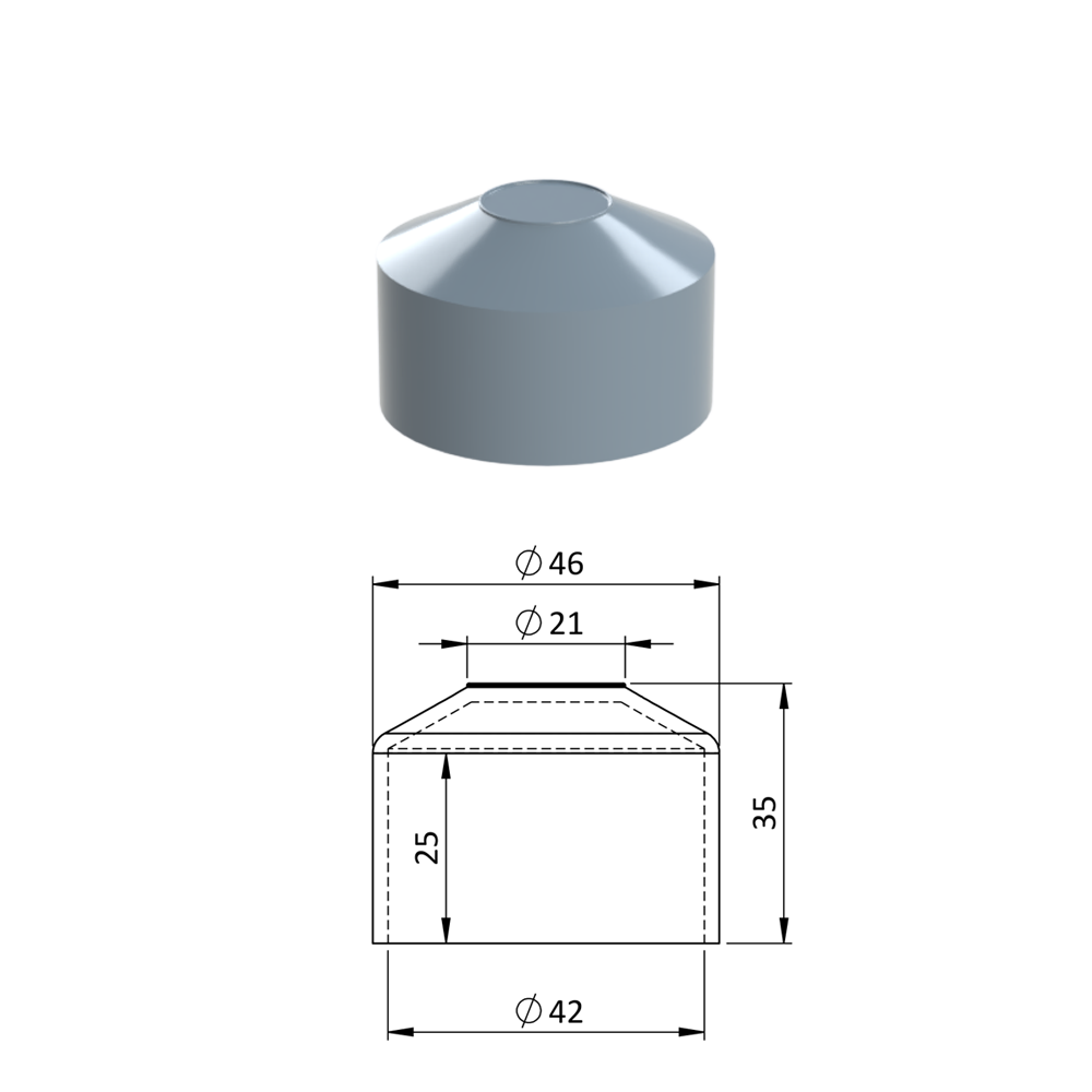 Vnější krytka kulatá ø 42,4 mm, plastová PE, šedá