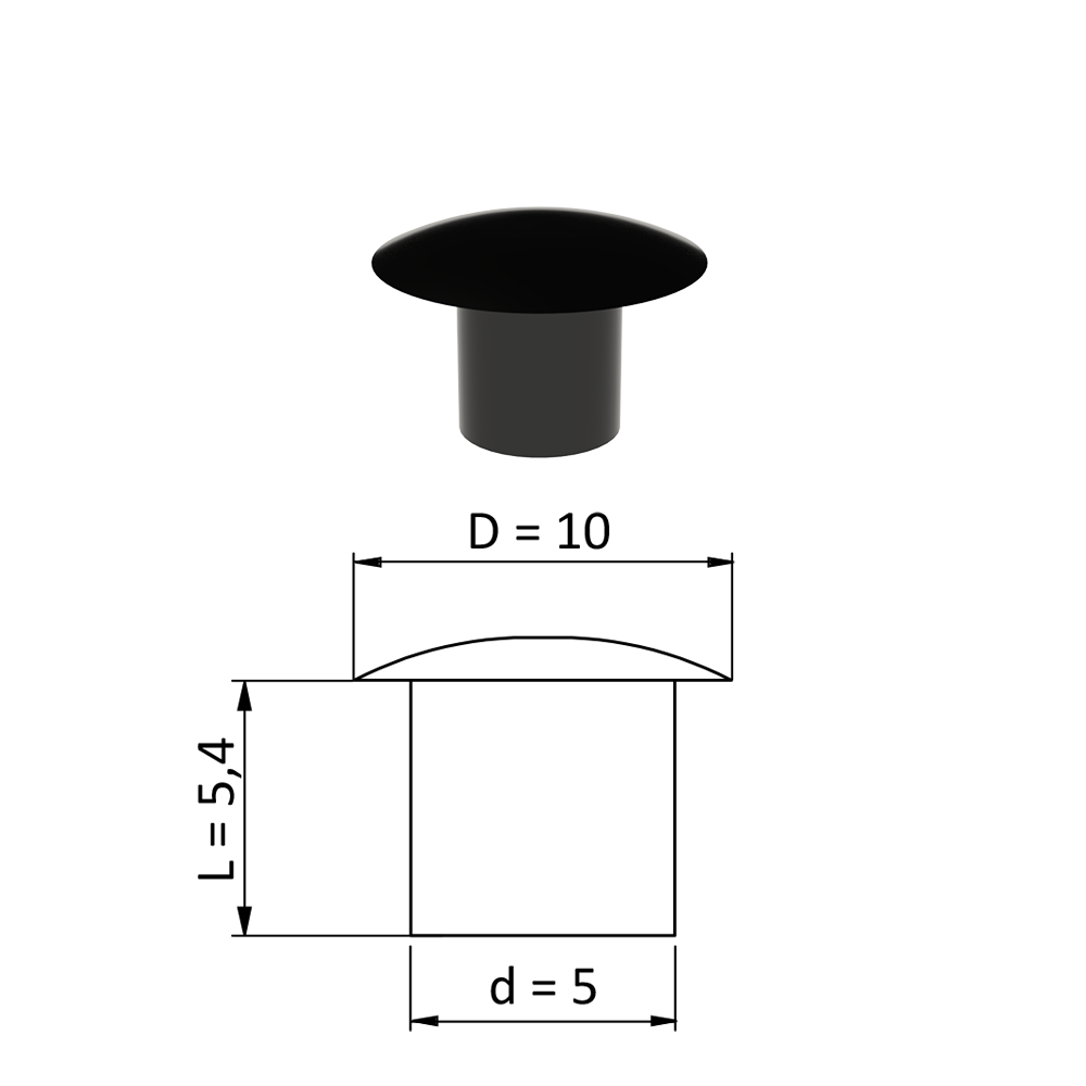 Vnitřní krytka kulatá ø 10 mm, otvor ø 5 mm, černá, plast