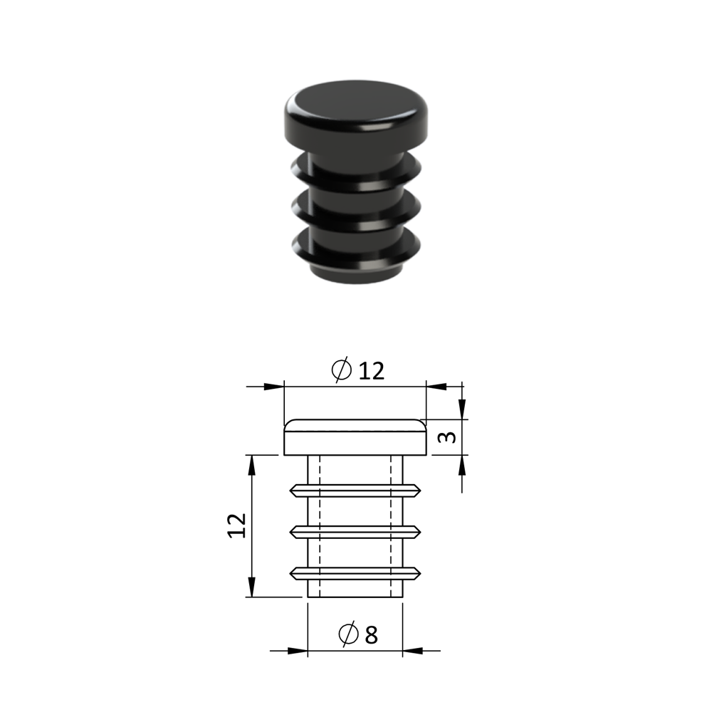 Vnitřní krytka kulatá ø 12 mm, plastová, černá
