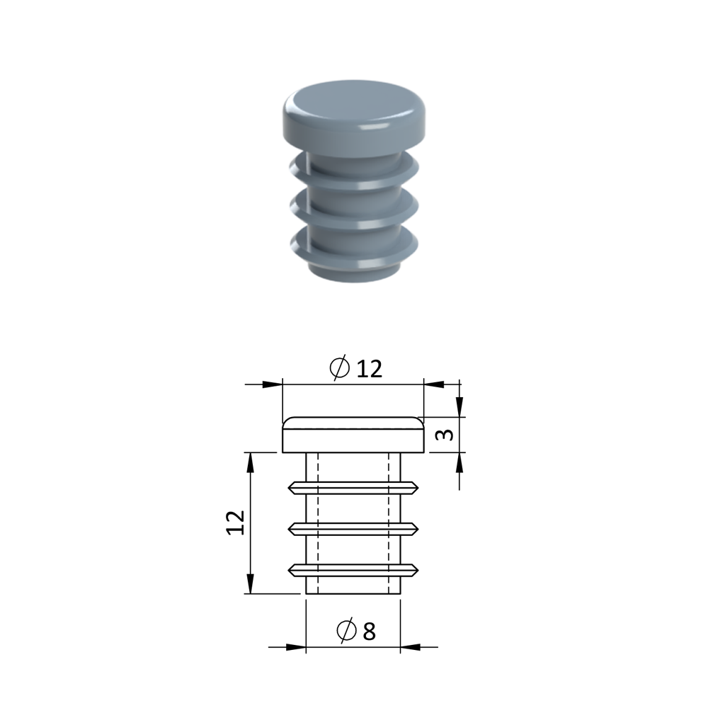 Vnitřní krytka kulatá ø 12 mm, plastová, šedá