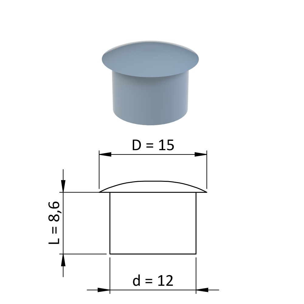 Vnitřní krytka kulatá ø 15 mm, otvor ø 12 mm, šedá, plast