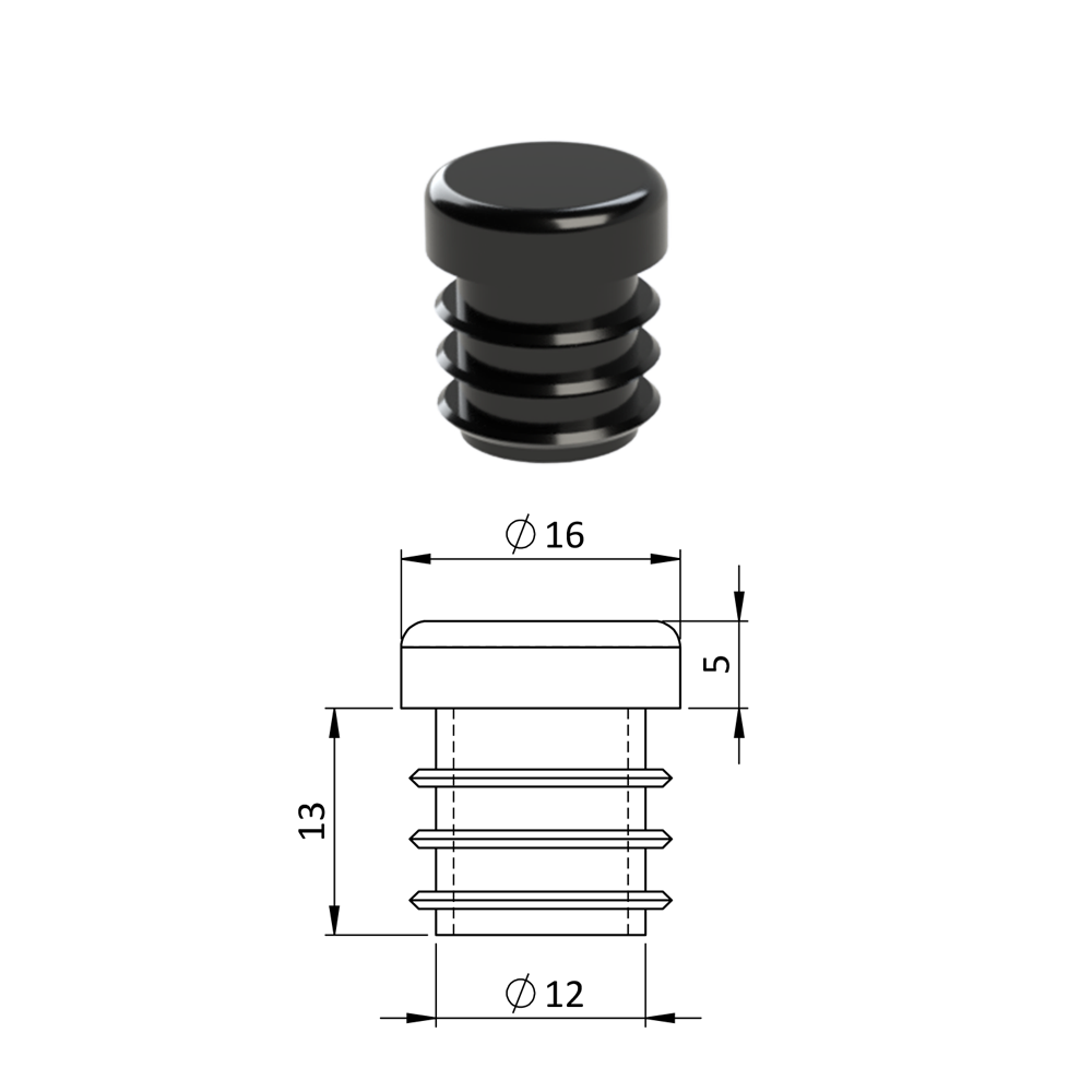 Vnitřní krytka kulatá ø 16 mm, plastová, černá